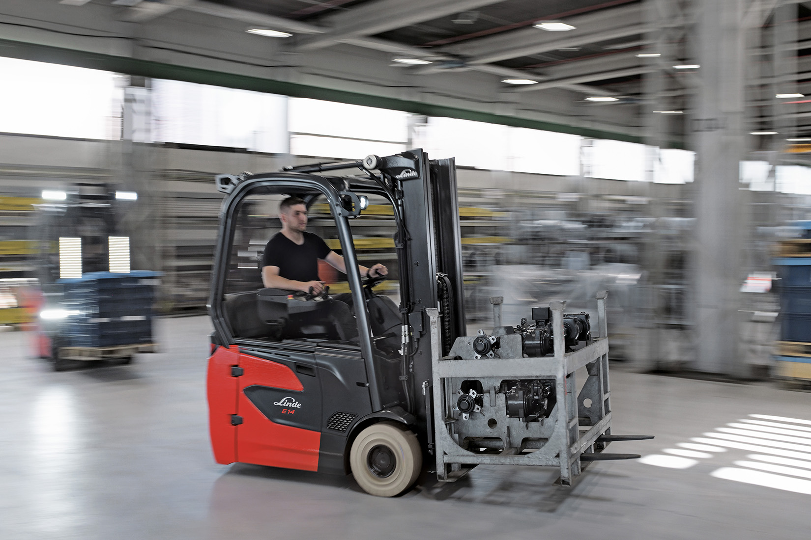 Elektrische heftruck Linde E14–E20 (driewiel) De elektrische heftrucks E14 – E20 combineren een compact ontwerp en een hoge wendbaarheid met topsnelheden tot 20 km/u. Hierdoor leveren ze maximale rijprestaties, vooral in krappe ruimtes. De driewielversie met meedraaiende as en compact chassis zorgt voor maximale wendbaarheid in binnentoepassingen. De driewiel vorkheftruck is verkrijgbaar in zeven varianten met verschillende batterijcapaciteiten en chassisafmetingen. Hierdoor hebben gebruikers de perfecte heftruck voor elke toepassing.
