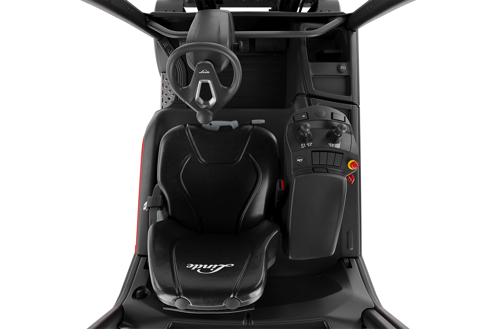 De E14 – E20 bieden een ergonomisch geoptimaliseerde werkplek die vermoeidheid helpt voorkomen en geconcentreerd werken mogelijk maakt, zelfs tijdens lange diensten. De mast, aandrijving en stuuras zijn losgekoppeld van het chassis via elastomeer ringlagers om de bestuurder te beschermen tegen trillingen veroorzaakt door de oneffenheden van de vloer. Dit zorgt voor soepel rijden en vermindert schadelijke trillingen. Tegelijkertijd garandeert het innovatieve bedieningsconcept met dubbele pedaalbediening en Linde Load Control een volledig intuïtieve bediening van de heftruck. De ruime bestuurderscabine heeft gebruiksvriendelijke bedieningselementen en een goed afleesbaar 3,5 inch black panel display. Voor optimale werktemperaturen zijn de heftrucks verkrijgbaar met een gesloten cabine met airconditioning en verwarming. De ruime keuze aan comfortstoelen met verschillende rugleuningen, bekledingen en veringen zorgt voor een ontspannen zithouding, die is afgestemd op de bestuurder. Het optionele Linde Steer Control besturingssysteem met ministuur of joystick in plaats van het stuurwiel biedt een verbeterde ergonomie. Het vermindert de belasting van de schouder en elleboog en vergemakkelijkt nauwkeurig manoeuvreren.