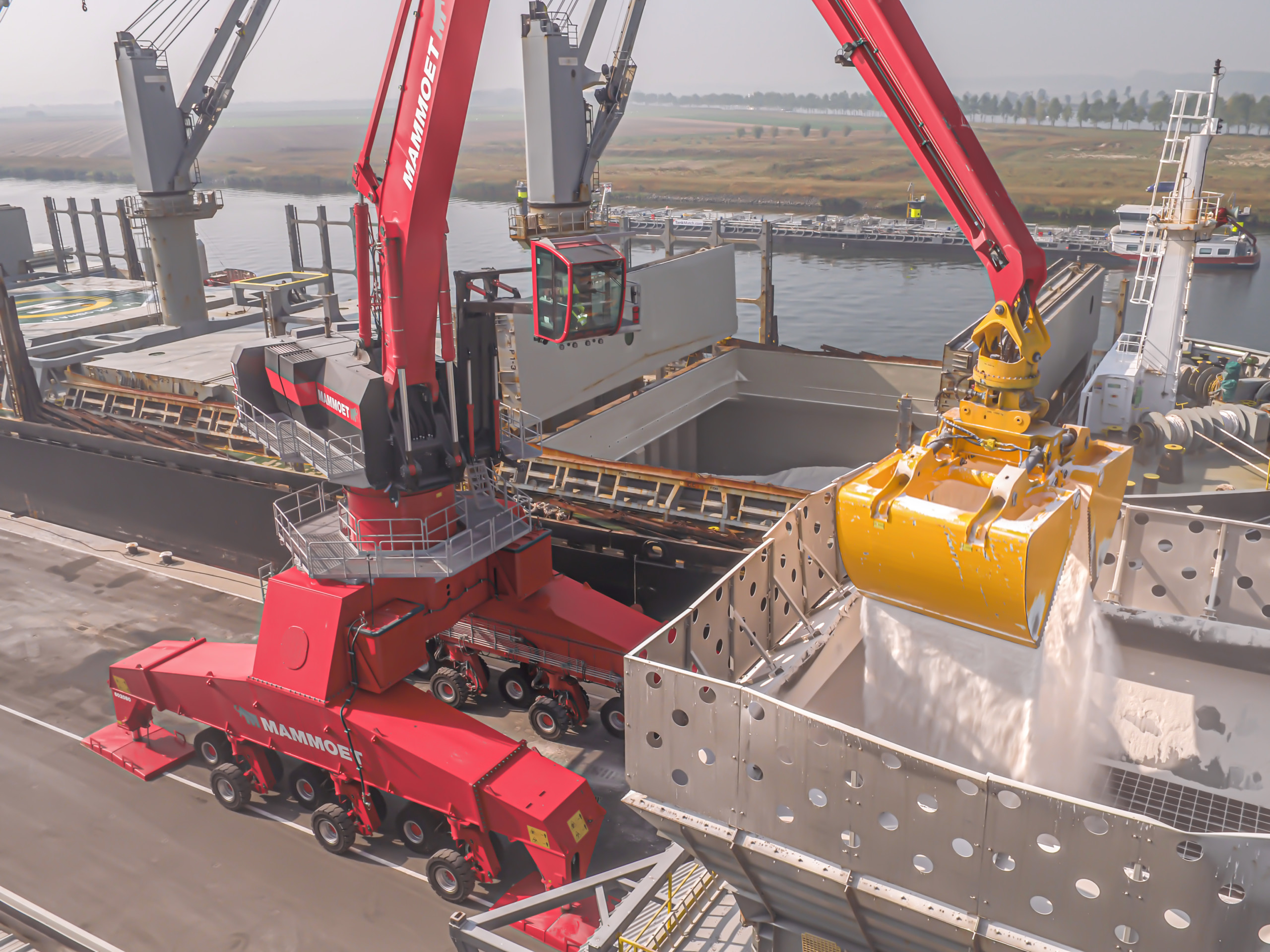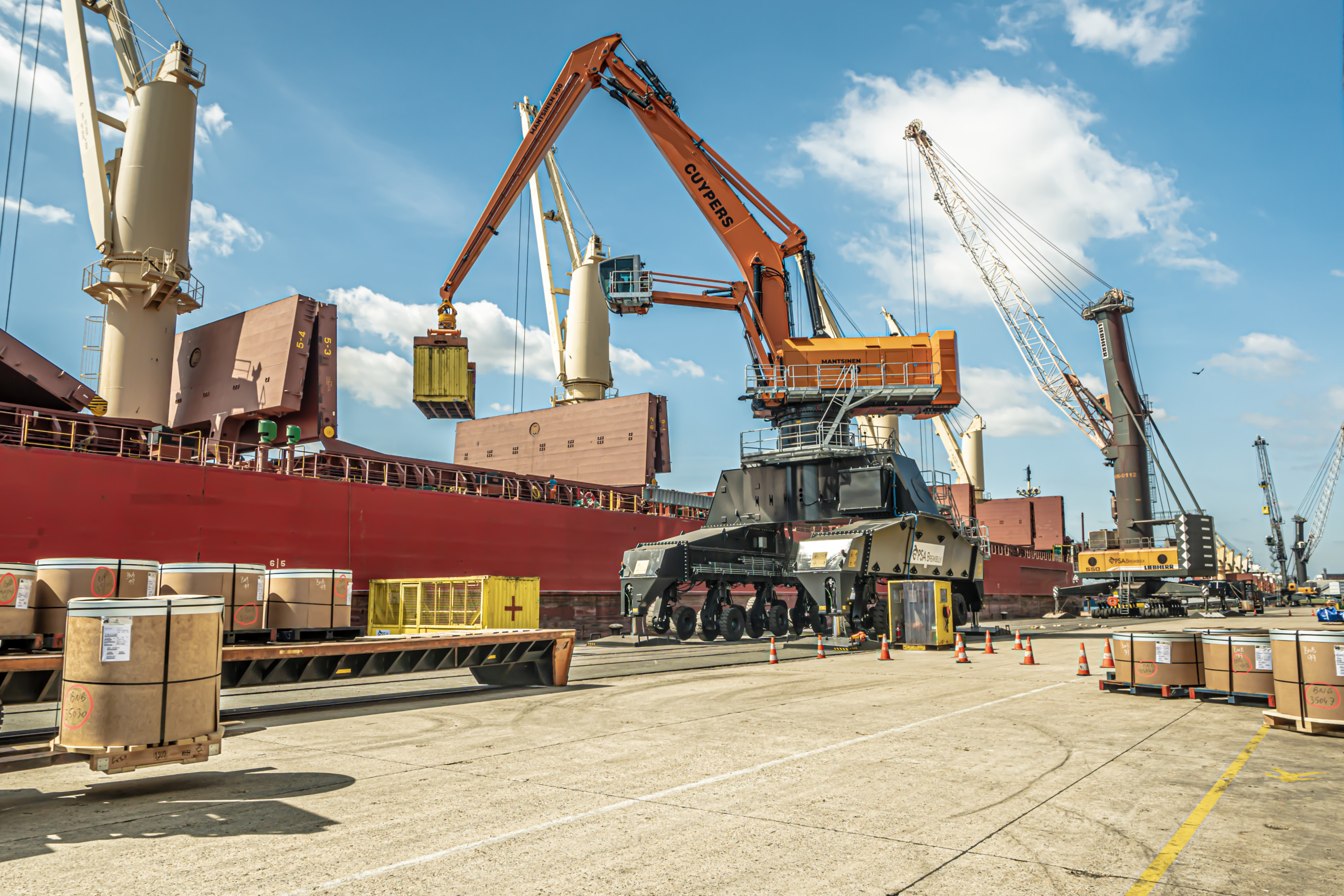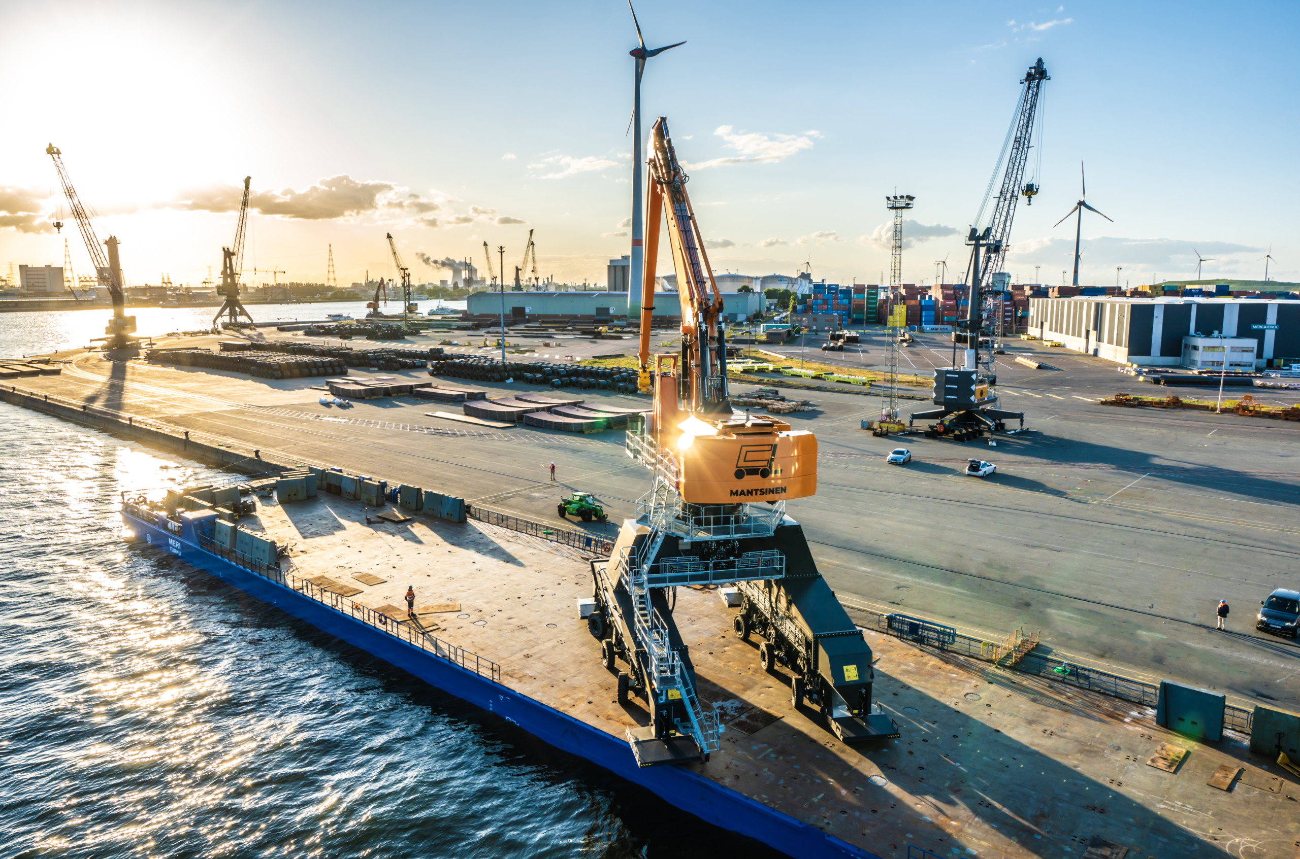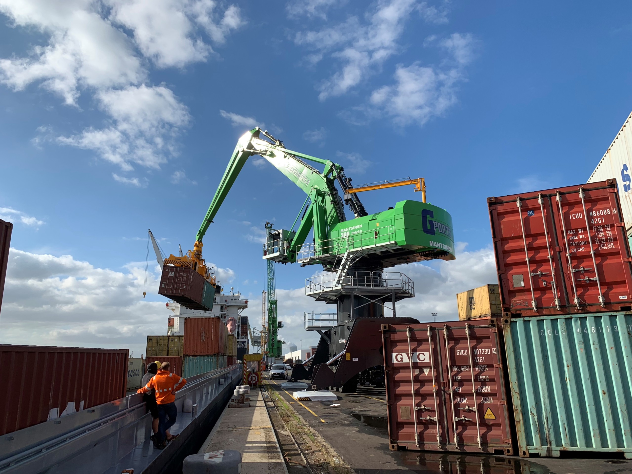 De Mantsinen 300 material handler tilt de efficiëntie van het laden en lossen van schepen naar een geheel nieuw niveau. Dit zorgt voor de snelste werkcyclus op de markt en de beste productiviteit in zijn klasse. De 300 is ontworpen om te voldoen aan de eisen van moderne overslag en kan vracht overslaan tot schepen van de Panamax-klasse, maar kan ook zware stukgoederen en containers aan. De overslagmachine van de 300-serie kan bijvoorbeeld een volle 40ft container ongeveer 22 meter verplaatsen zonder van positie te hoeven veranderen. Ondanks zijn enorme afmetingen is de Mantsinen 300 net zo wendbaar en precies als alle kleinere overslagmachines.